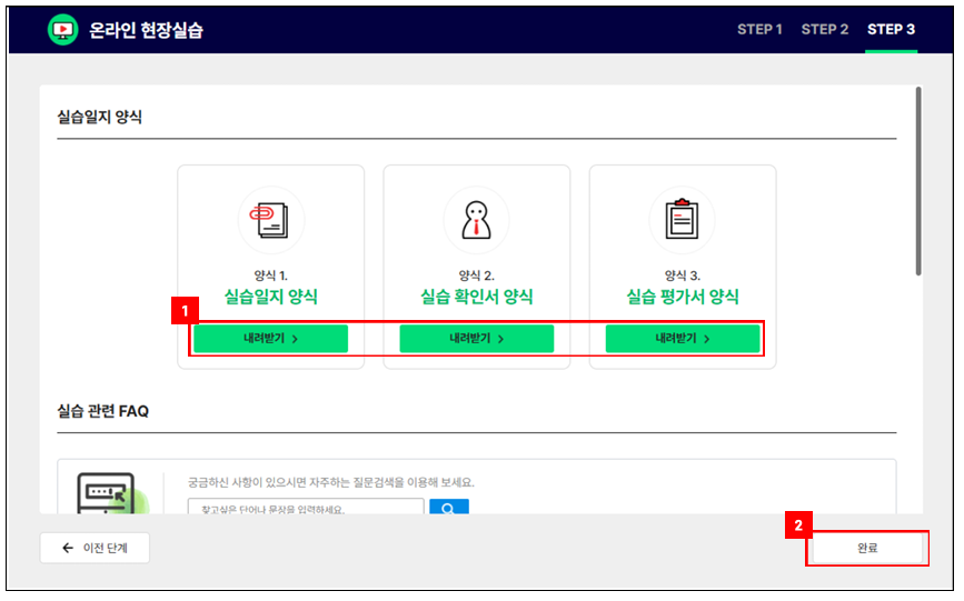 양식은 온라인 실습 신청서 STEP3에서 다운로드 가능하며
