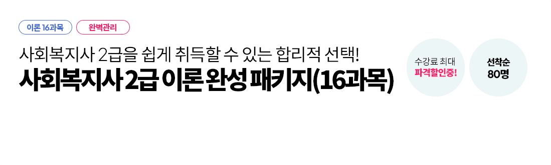 | 장애인복지론 | 여성복지론 | 자원봉사론 | 교정복지론 | |
